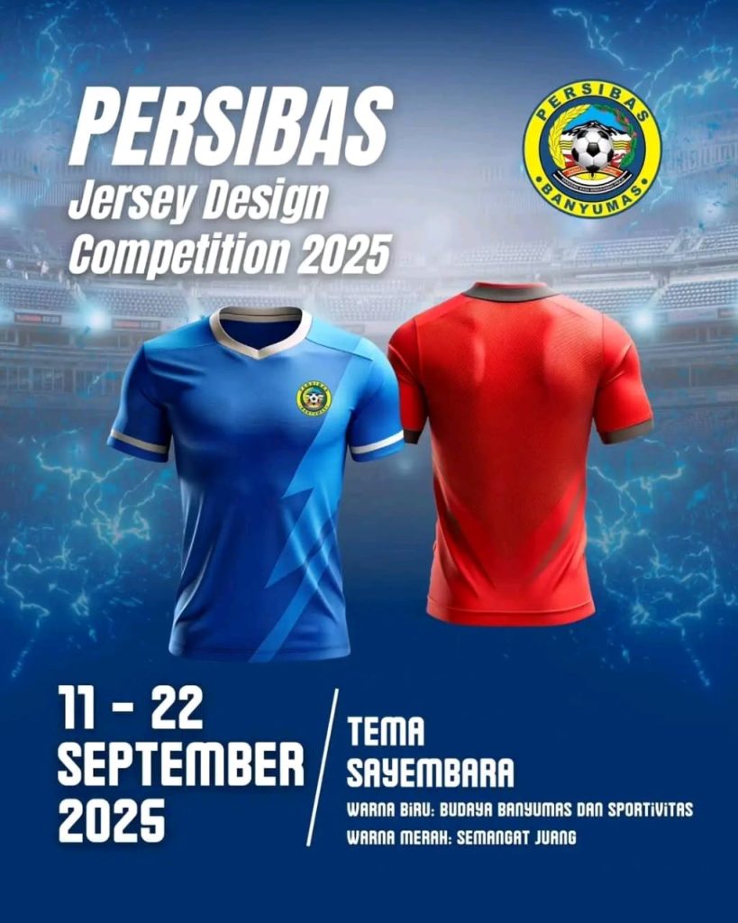 Persibas Banyumas mengumumkan digelarnya Jersey Design Competition 2025 yang terbuka untuk umum, baik desainer profesional maupun masyarakat luas. Kompetisi ini berlangsung pada 11–22 September 2025 dengan tujuan menghadirkan desain jersey yang segar, orisinal, serta mampu menggambarkan nilai budaya Banyumas.