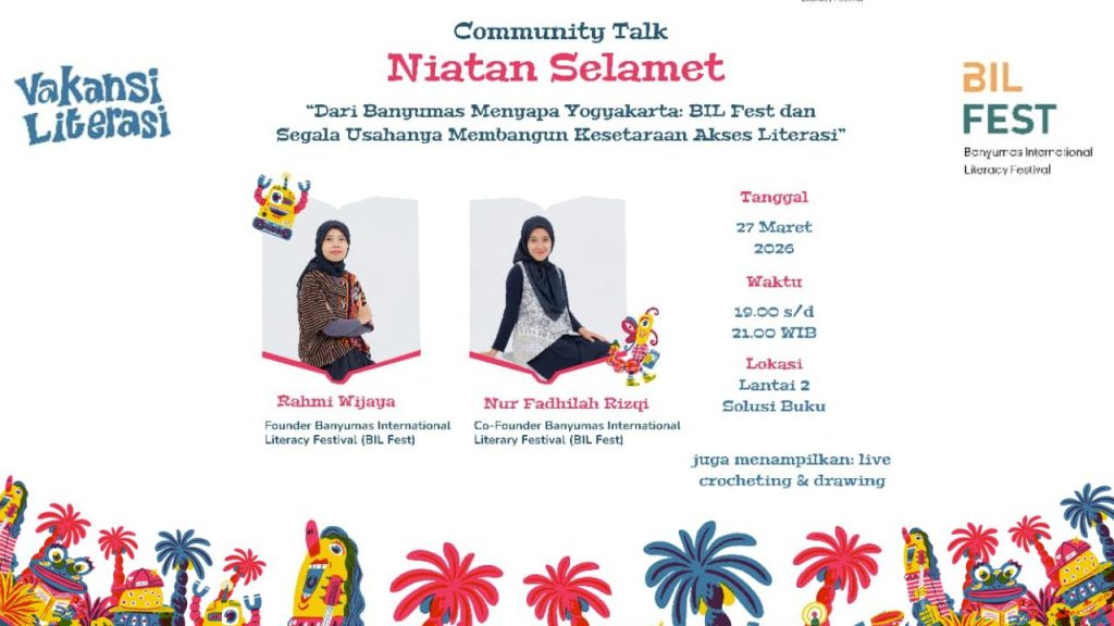 Bagi kamu yang berada di sekitaran Yogyakarta, saatnya merapat ke Vakansi Literasi! Jangan lewatkan momen istimewa ini di mana Banyumas menyapa Yogyakarta dengan penuh kasih. Acara Community Talk “Niatan Selamet” siap membuka pintu wawasan baru tentang bagaimana literasi menjadi jembatan antarwilayah. Di sini, kamu akan merasakan denyut nadi semangat yang sama: dari Banyumas ke Yogyakarta, literasi adalah bahasa persatuan yang tak tergantikan.