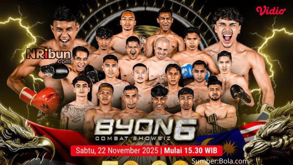 Jakarta — Sabtu, 22 November 2025 — Ajang Byon Combat Showbiz 6 kembali mengguncang dunia olahraga tarung Tanah Air dengan tema rivalitas panas antara Indonesia melawan Malaysia. Setelah sukses dengan edisi-edisi sebelumnya, pertarungan kali ini dijanjikan membawa tensi nasionalisme, gengsi, serta drama luar biasa — baik di dalam ring maupun di luar arena.